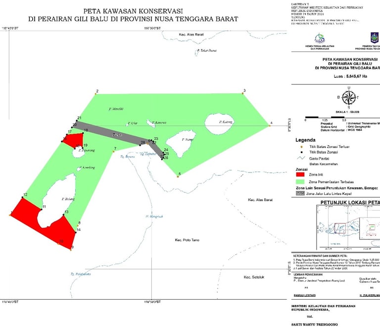 Informasi ini membantu publik mengenali lokasi penting konservasi laut di wilayah Sumbawa dan Sumbawa Barat, termasuk kawasan terumbu karang, padang lamun, mangrove, serta habitat biota laut yang dilindungi.